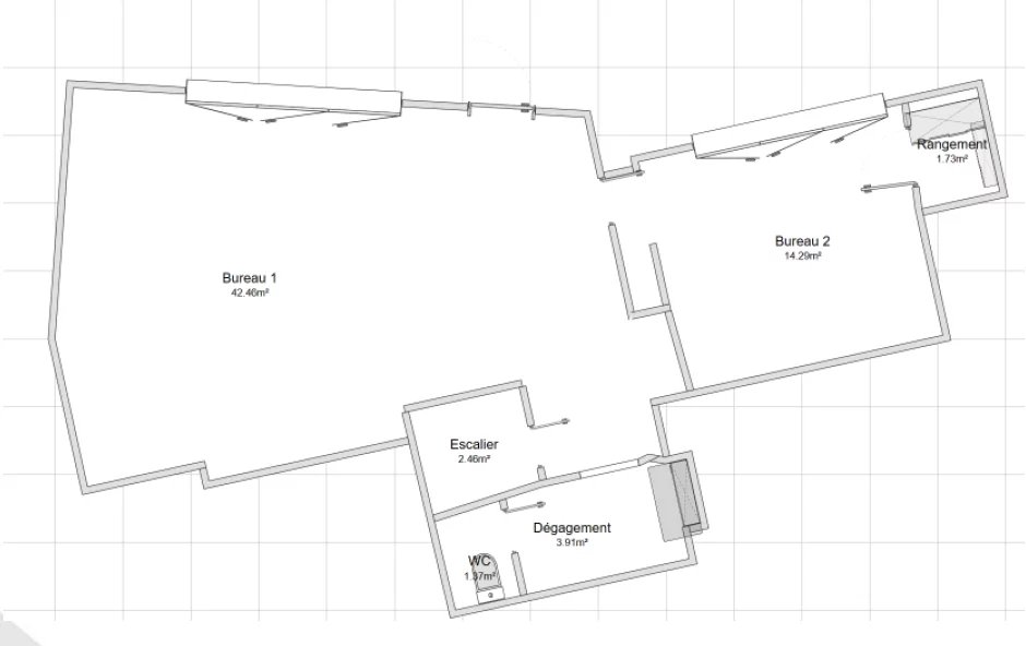 Il est composé d'un grande pièce d'accueil de + de 40 m2, un bureau avec une pièce pour archives, un coin cuisine, et un wc.