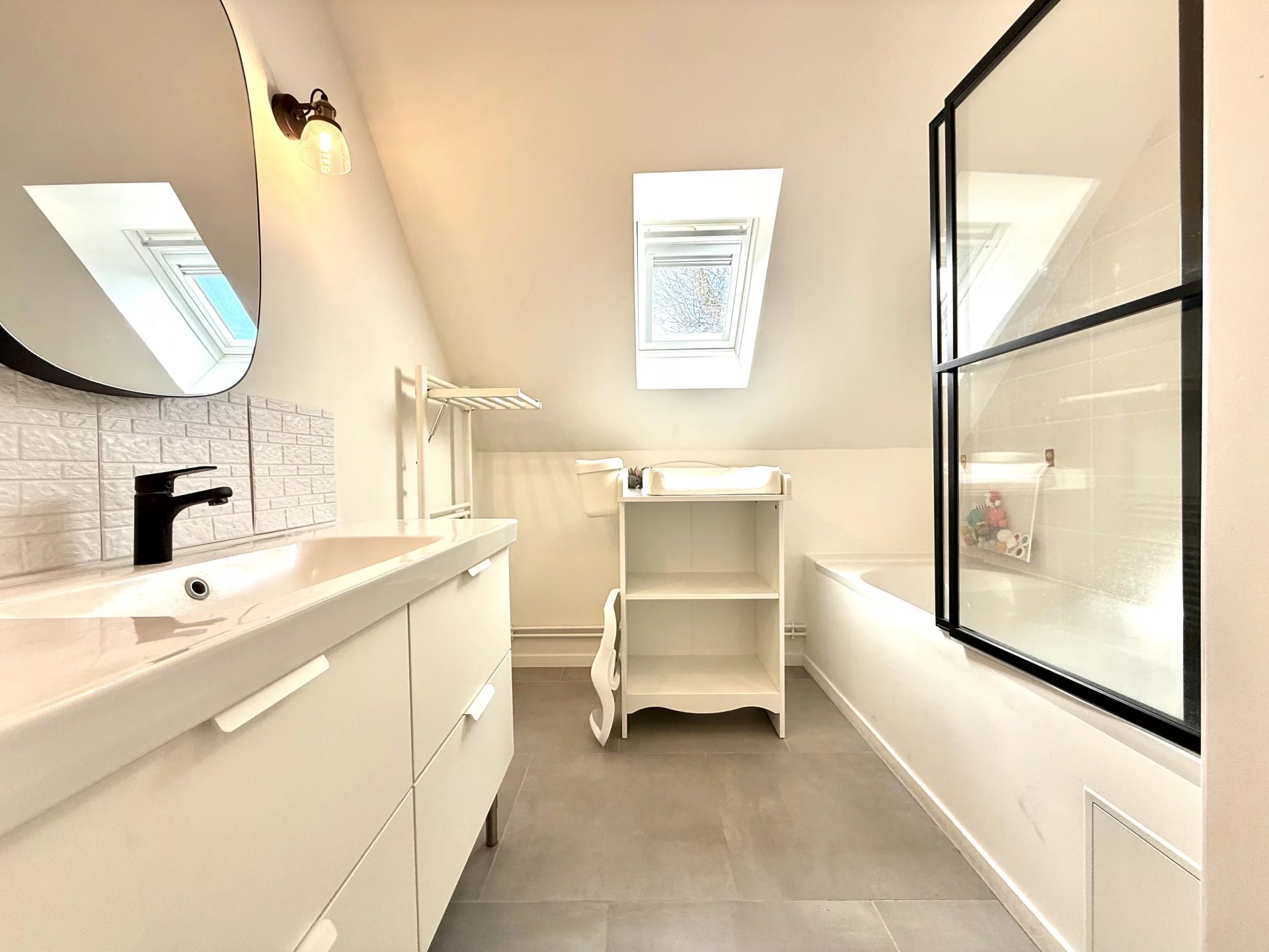 - Au rdc : Une entrée avec placards. un double séjour / salle à manger. une cuisine entièrement aménagée et équipée. un cellier. un wc indépendant.