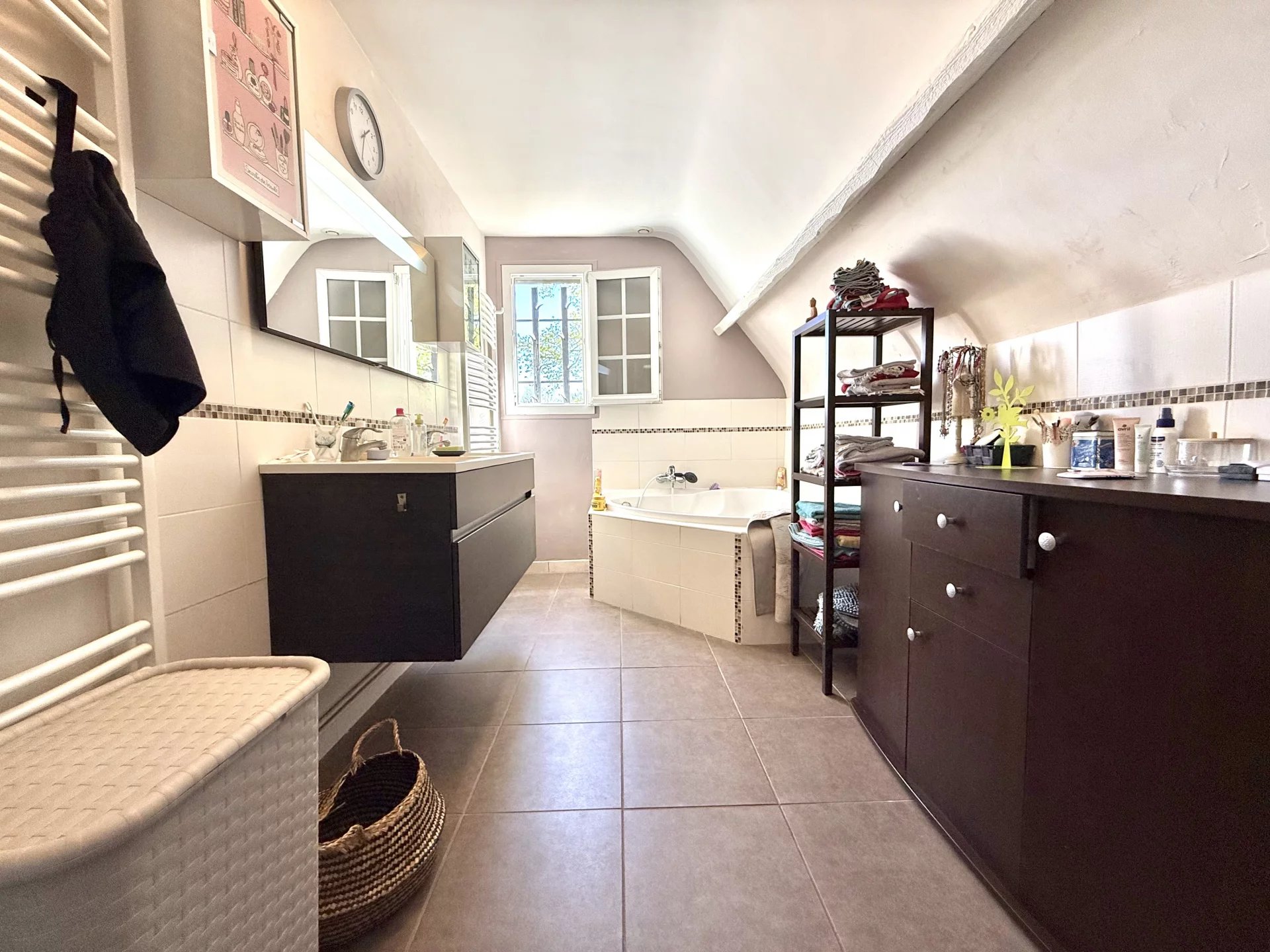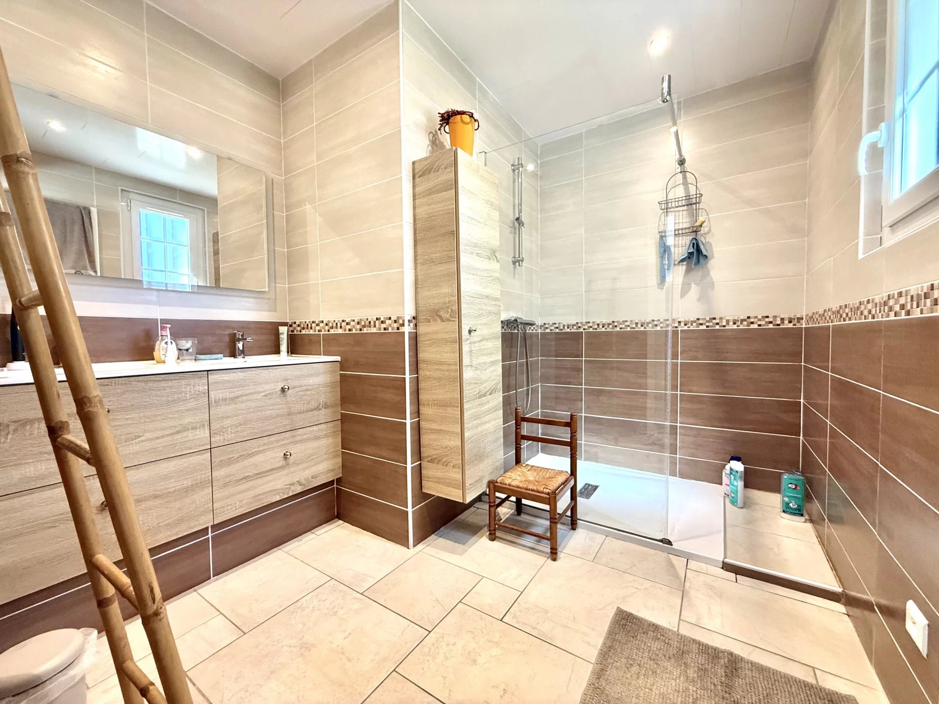 - Au rdc : une entrée, un beau double séjour / salle à manger, une cuisine entièrement aménagée et équipée, une suite parentale avec dressing et salle de douches privative, une buanderie, un wc indépendant.