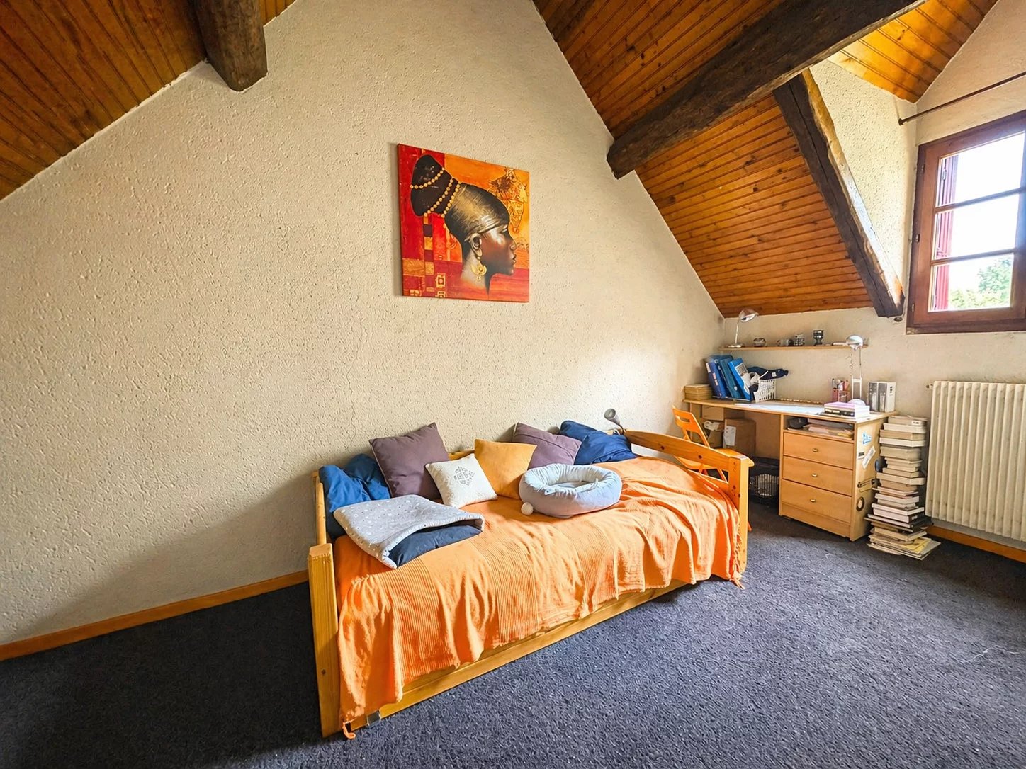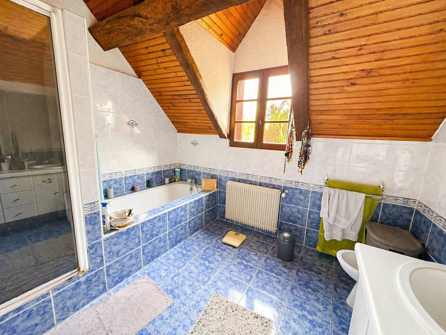 À l’étage, deux chambres supplémentaires, une salle de bain avec baignoire et douche, ainsi qu’un WC indépendant avec lave-mains.