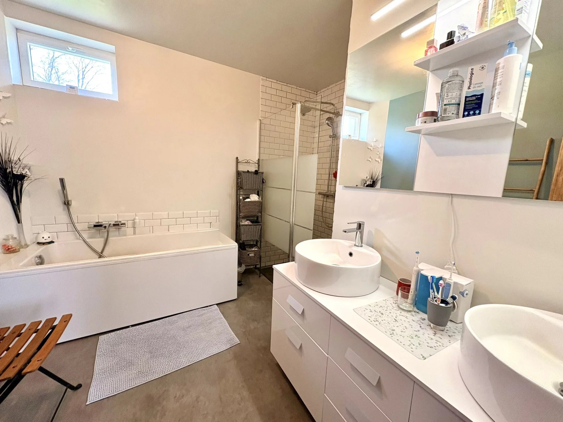 Au premier étage : deux chambres, une salle de bains avec douche et un WC indépendant.