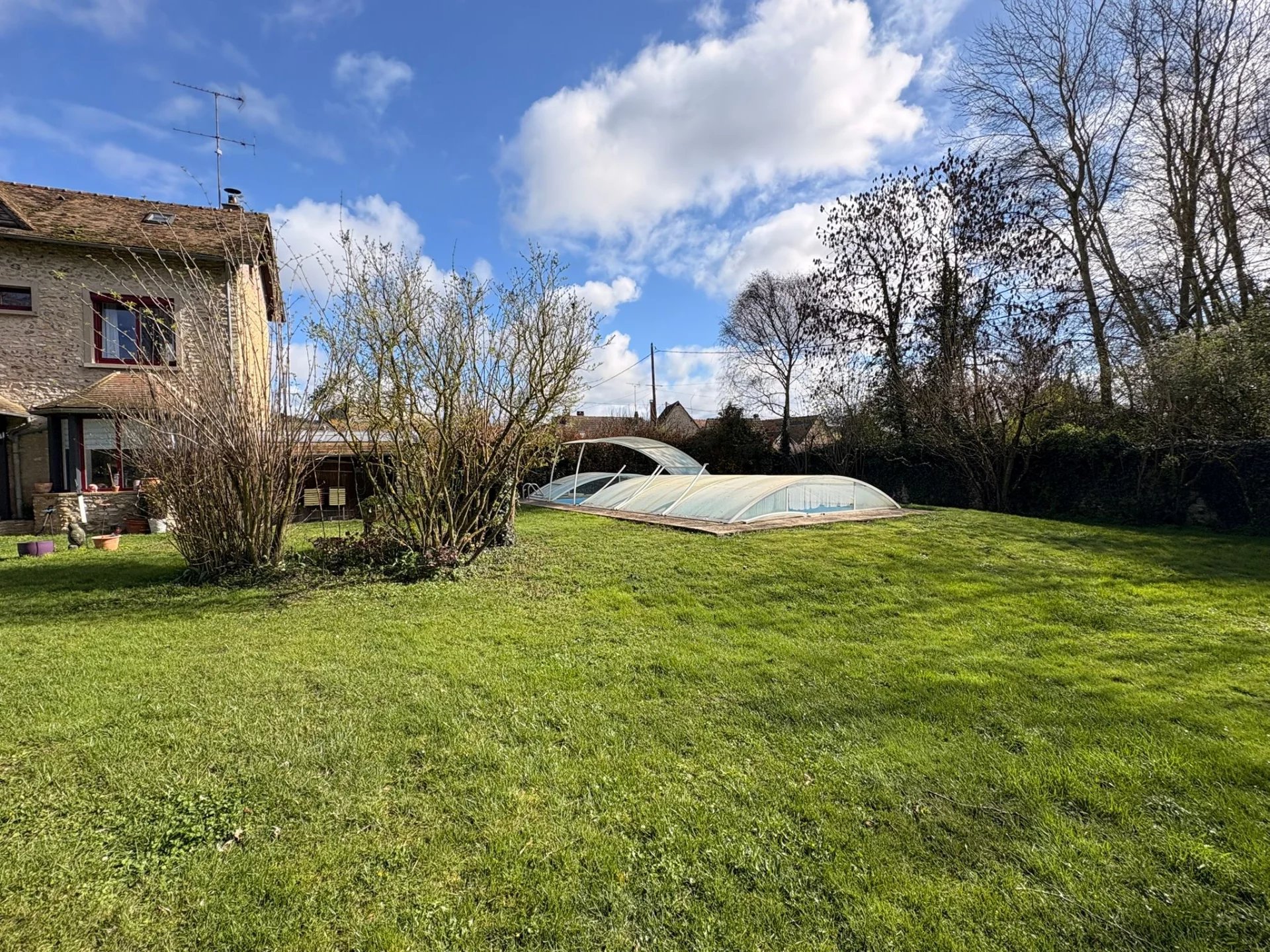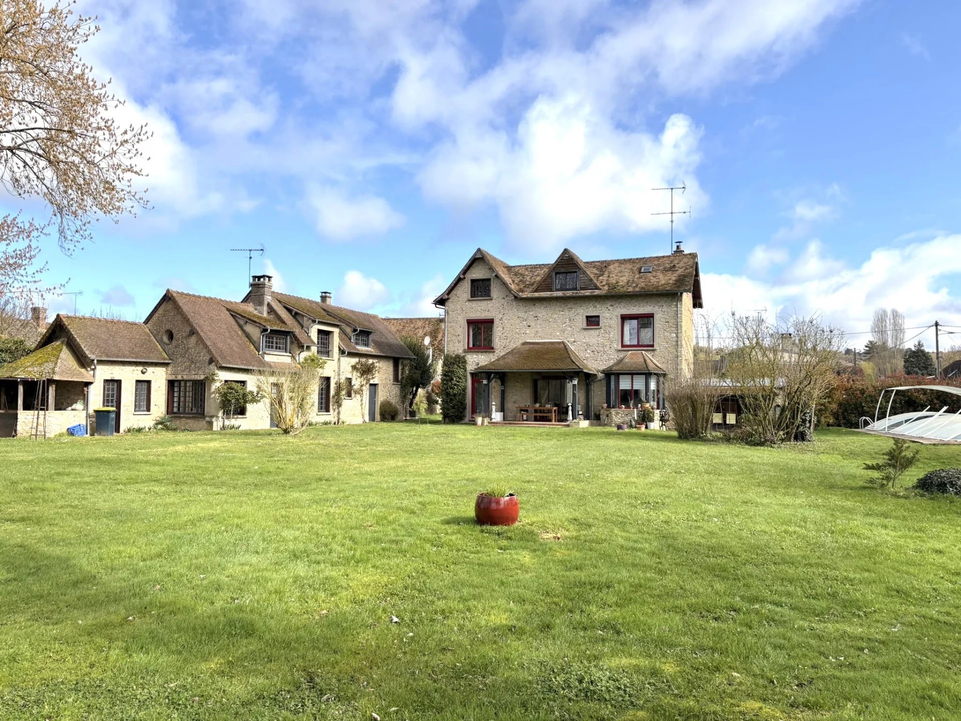 À l’extérieur, vous profiterez d’un jardin paysager, d’une piscine 10 x 5 m partiellement rénovée en 2025, d’un double garage ainsi que de deux puits avec forage.